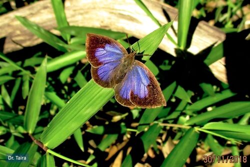 11月も終わりに近づいてきましたが、まだまだチョウが羽ばたく姿や葉の上をウロウロする昆虫の姿が見られます。 写真1は、ツツジの上で朝陽を浴びるムラサキツバメ Narathura bazalus です。マテバシイの植樹の周りを飛んだりとまったりしていました。 写真1…