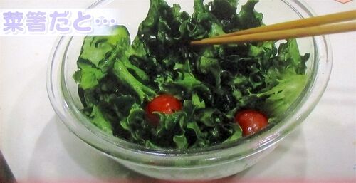 今朝のNHK「あさイチ」ではトングと菜箸の使い方の比較が取り上げられていました。たとえば、サラダの菜っ葉を菜箸で混ぜると、それが葉に突き刺さってしまうなどの欠点が指摘されていました(図1)。 図1. サラダを菜箸で混ぜる(2019.02.05 NHK「あさイチ…