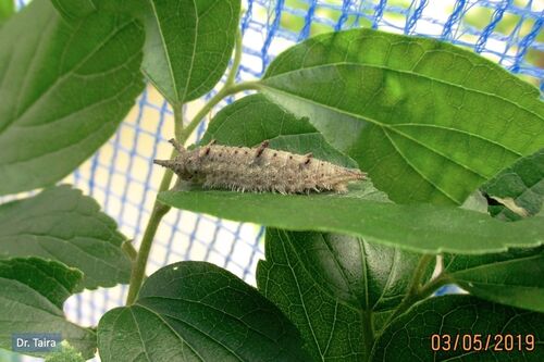 昨日はエノキ上にいるゴマダラチョウの幼虫などを鳥による食害から守るために木の網掛け保護対策を行いました。その甲斐あってか、今日観察に行ったら毎日のように減っていた幼虫の数が、昨日と同数に維持されていました。まだ1日しか経っていませんが、効果…